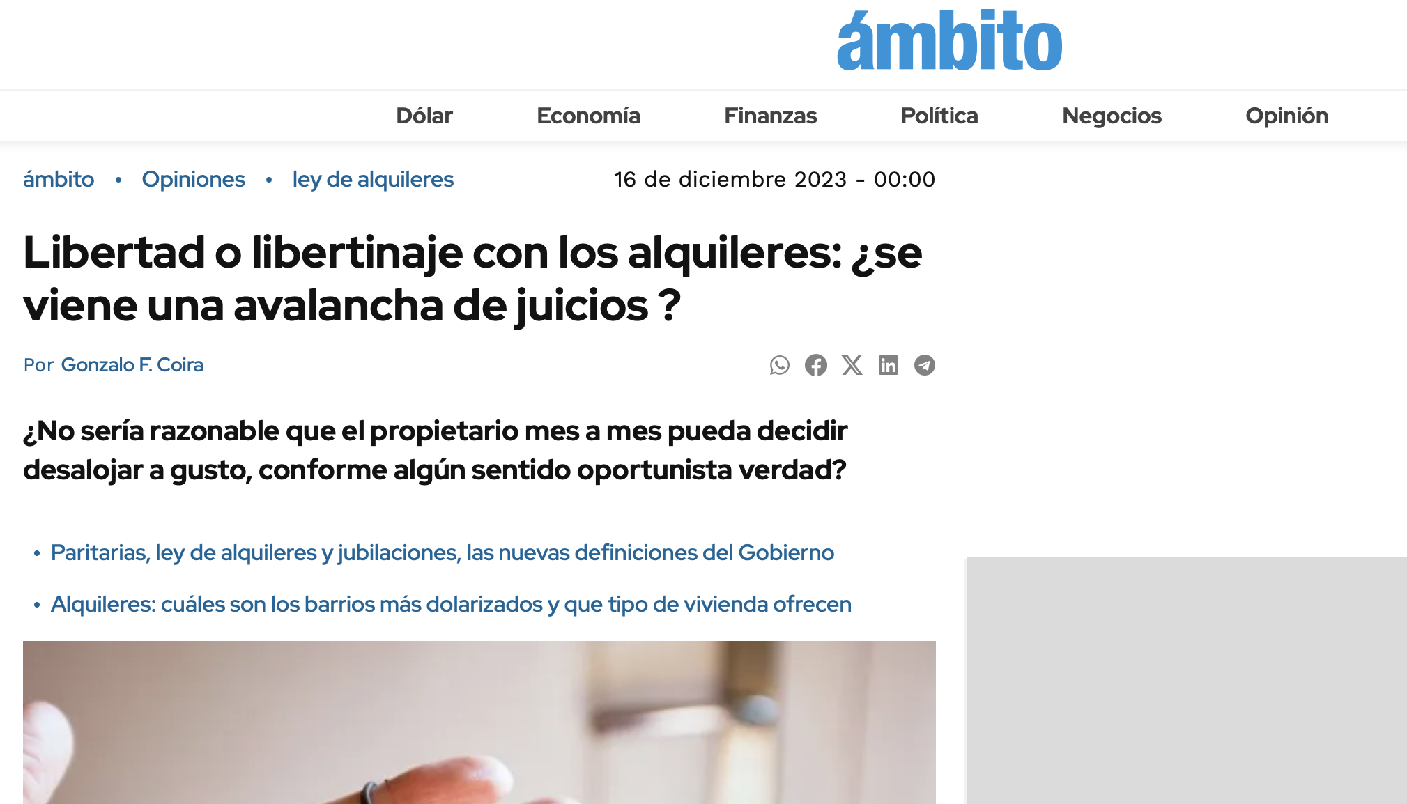 En esa línea de ideas, la derogación de la ley de alquileres, viene a dar un aliciente de seguridad jurídica a los propietarios e inversores en materia de real estate, quienes pueden resignar algo de rentabilidad, en pos de obtener a largo plazo mayor certidumbre. Situación que no es tal con la ley vigente. Hablamos de libertad, libertad en contratación para ambas partes, pero con ciertos parámetros como existen en todos los modelos exitosos de la región.